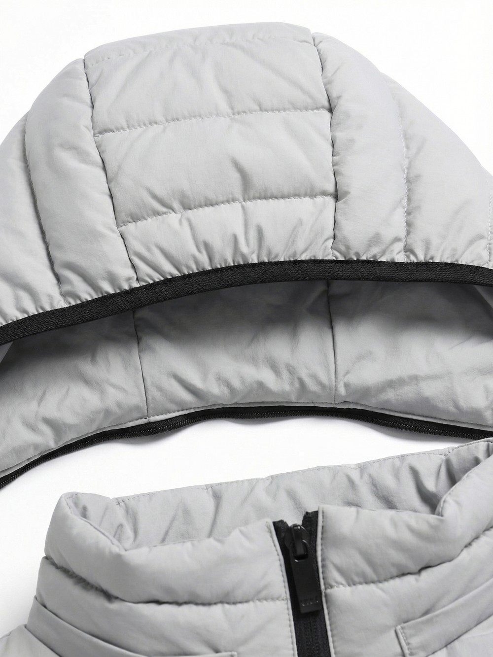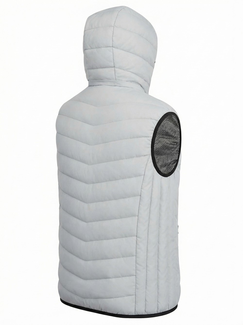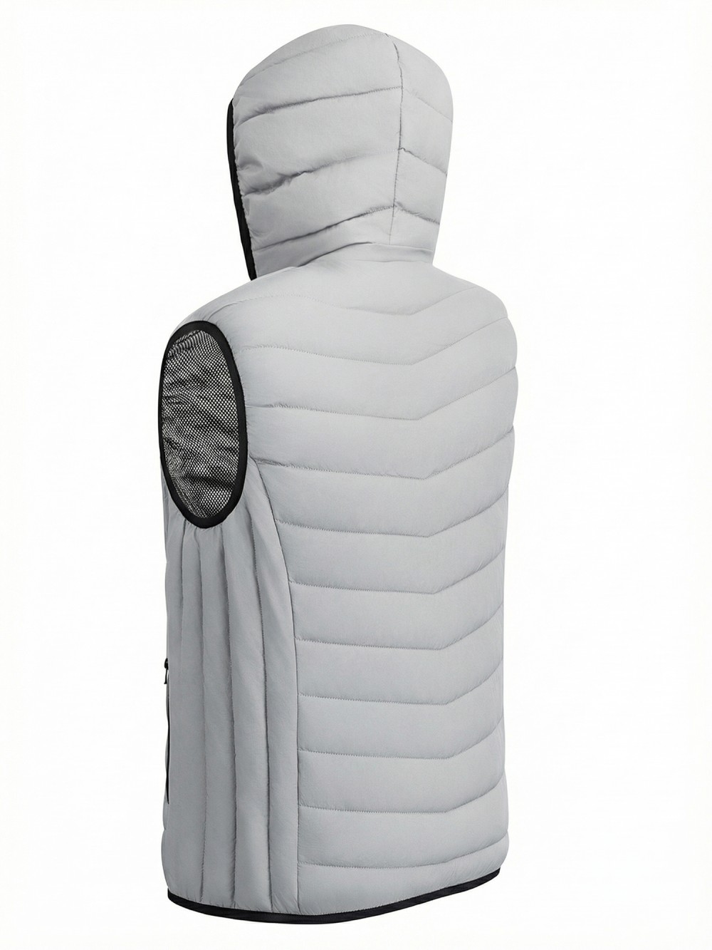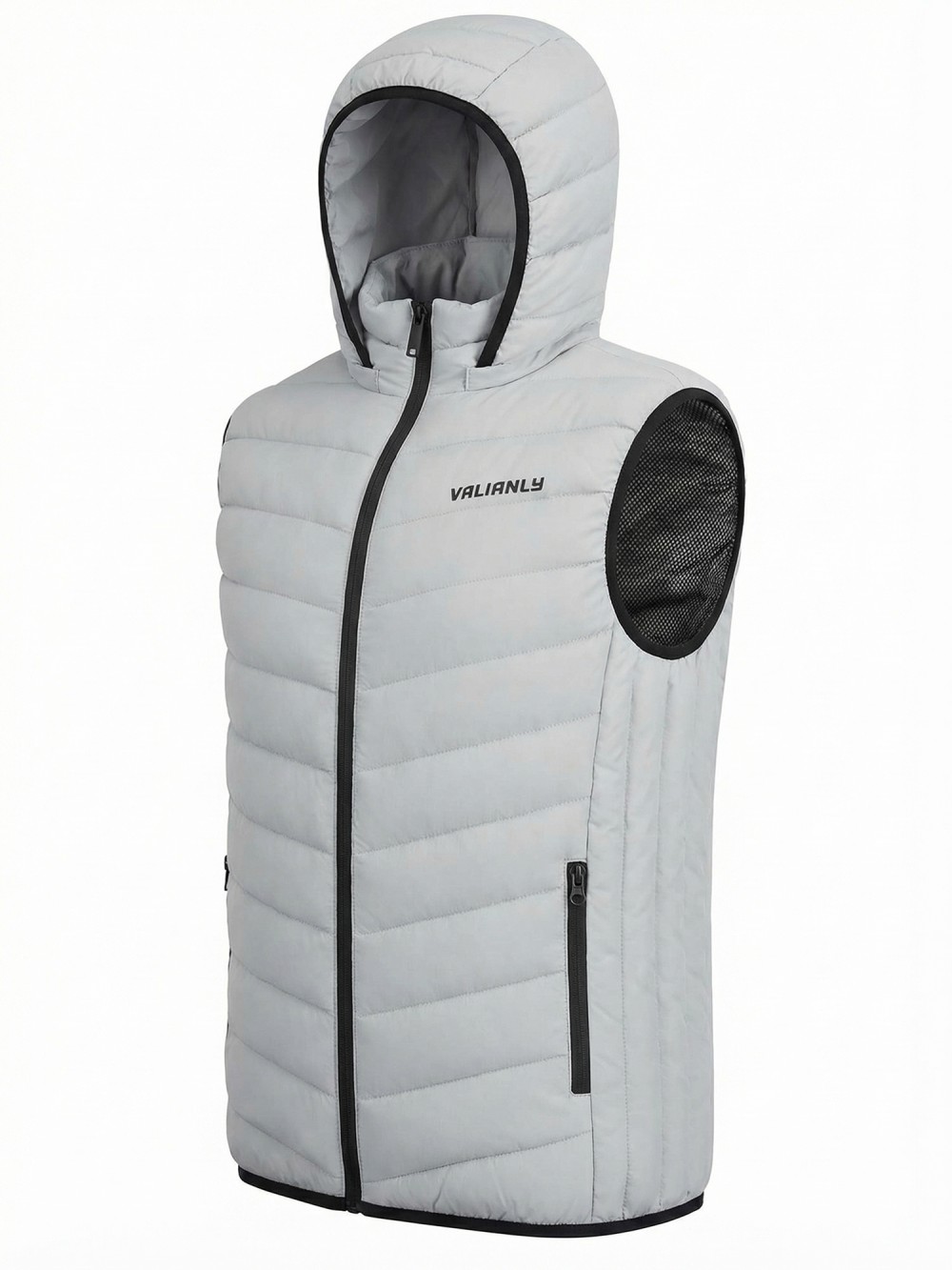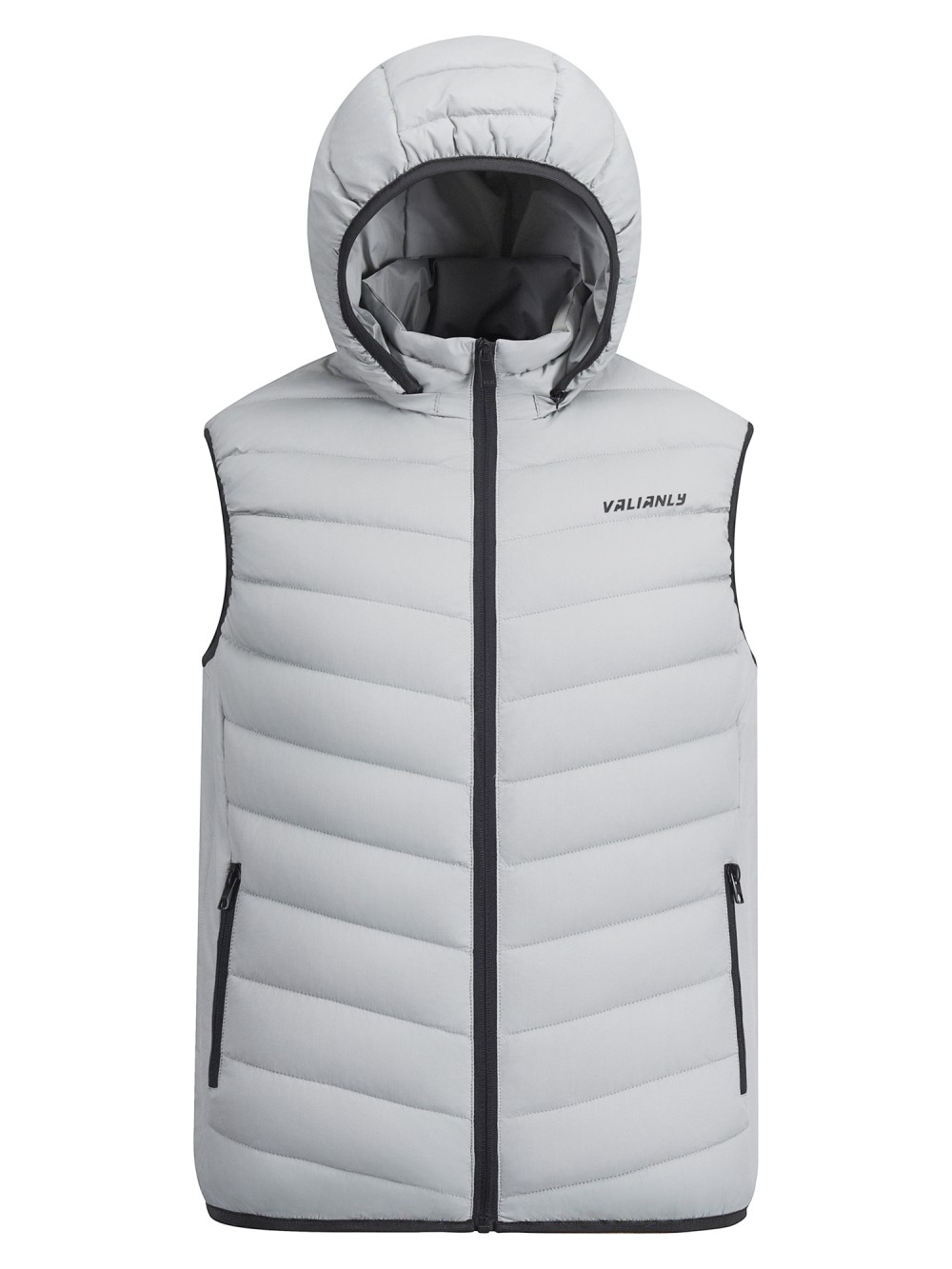 Мужской лёгкий стёганый жилет Valianly с капюшоном серого цвета 9635_1Sr